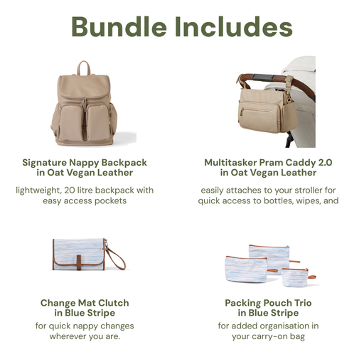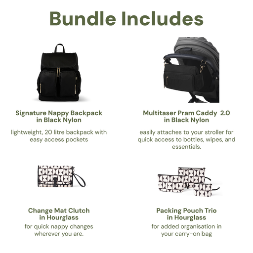 View full detailsOur First-Time Parent Bundle is a simple, organised setup designed to help new parents feel prepared for every outing with baby. Four premium essen...