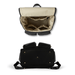 Made from black sateen nylon with a water-resistant finish, it’s durable and lightweight for all-day wear.