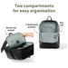 • Two main compartments for easy organisation