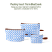Packing Pouch Trio in Blue Check – Compartmentalises your essentials to minimise clutter. Set includes three sizes so you can easily separate nappies, spare clothes and smaller essentials. More info.