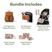 • Signature Pram Caddy in Tan Vegan Leather – Easily attaches to your stroller for quick access to bottles, wipes, and essentials. More info.