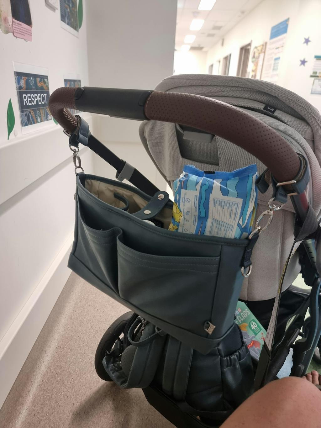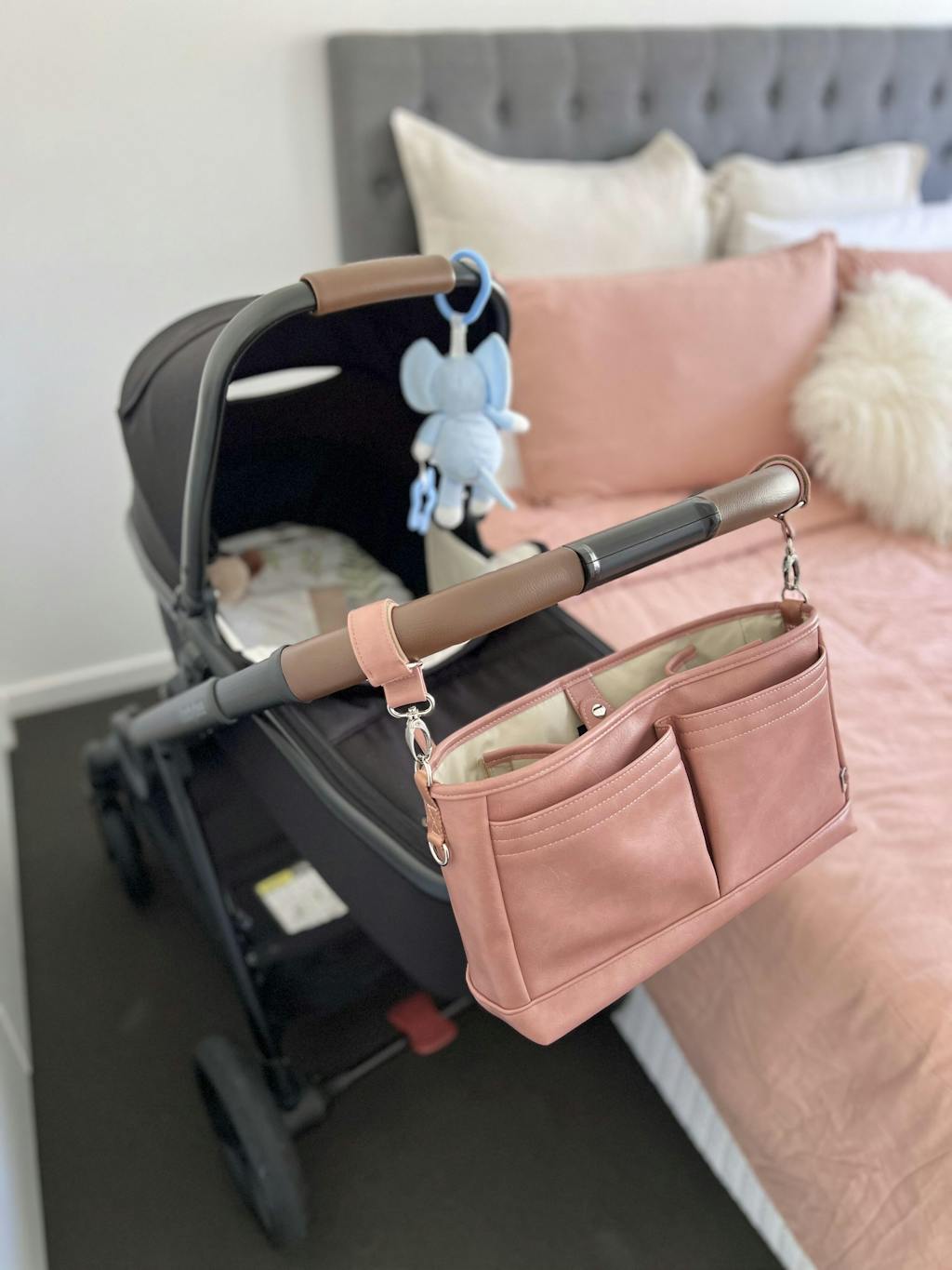 The Signature pram caddy includes a faux leather cross-body strap so you can turn it in a shoulder bag with ease.
